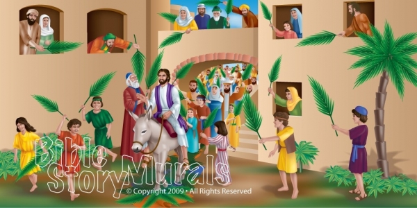 New Testament Murals come in standard sizes of 4’x8′, 5’x10′, 6’x12′ and 8’x16′. All murals are available with darker or lighter skin tones. For specialty sizes please view our Specialty Murals page.